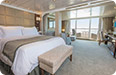 Occupancy: 5 Master Suites are at the very front of the ship and have two separate bedrooms with floor-to-ceiling windows with sliding glass doors that open to two separate, private, teak balconies ... Read More Master Suites are at the very front of the ship and have two separate bedrooms with floor-to-ceiling windows with sliding glass doors that open to two separate, private, teak balconies with patio furniture. Both bedrooms are large and have two twin beds that can convert to European king-size beds, vanities, televisions, walk-in closets, marble appointed bathrooms with tub, shower, and cotton robes. The two bedrooms share one living room with sofa, love seat, chairs and coffee table. The living room also has a sliding glass door that opens to a very large, glass enclosed deck. Master Suites also have a separate dining area, guest powder room, writing desk, refrigerator stocked with soft drinks and bar setup upon embarkation, remote-controlled television, VCR, multi-channel radio, personal safe, direct dial telephone, and hair dryer. This suite category includes Butler Service. Master Suite Amenities:- Free 1-Night Pre-Cruise Luxury Hotel Package including ground transfers, breakfast & porterage