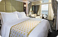 Occupancy: Sleeps 2 guests, some sleep 3 Horizon Suites feature floor-to-ceiling windows with sliding glass doors that open to a very large, private, teak balcony with patio furniture, bedroom area with two twin beds that can convert ... Read More Horizon Suites feature floor-to-ceiling windows with sliding glass doors that open to a very large, private, teak balcony with patio furniture, bedroom area with two twin beds that can convert to a European king-size bed, walk-in closet, marble appointed bathroom with tub, shower, and cotton robes, sitting area with sofa, chairs and cocktail table that raises for in-suite dining, writing desk, refrigerator stocked with soft drinks and bar setup upon embarkation, remote-controlled television, VCR, multi-channel radio, personal safe, direct dial telephone, and hair dryer. This suite category includes butler service. Some suites are equipped with additional bedding to accommodate a third guest.Horizon Suite Amenities:- Free 1-Night Pre-Cruise Luxury Hotel Package including ground transfers, breakfast & porterage