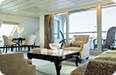 Occupancy: Sleeps 2 guests, some sleep 3 Mariner Suites are located mid-ship and feature a wall of floor-to-ceiling windows offering spectacular panoramic views and have sliding glass doors that open to a private, teak balcony with patio ... Read More Mariner Suites are located mid-ship and feature a wall of floor-to-ceiling windows offering spectacular panoramic views and have sliding glass doors that open to a private, teak balcony with patio furniture. There is a separate bedroom with two twin beds that can convert to a European king-size bed, sitting area, vanity, television, walk-in closet, marble appointed bathroom with tub, shower, cotton robes, living room with sofa, chairs and coffee table, separate dining area, guest powder room, writing desk, refrigerator stocked with soft drinks and bar setup upon embarkation, remote-controlled television, VCR, multi-channel radio, personal safe, direct dial telephone, and hair dryer. This suite category includes Butler Service. Some suites are equipped with additional bedding to accommodate a third guest.Mariner Suite Amenities:- Free 1-Night Pre-Cruise Luxury Hotel Package including ground transfers, breakfast & porterage